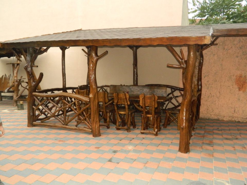 Confecţionată din lemn de carpen, brad şi acoperită cu tegola Mobilierul este inclus: masă + bancă + 6 scaune Cod: 01 Dimensiuni: L- 4 m, l – 3 m Pret: 18.000 lei +TVA sau ne găseşti aici: